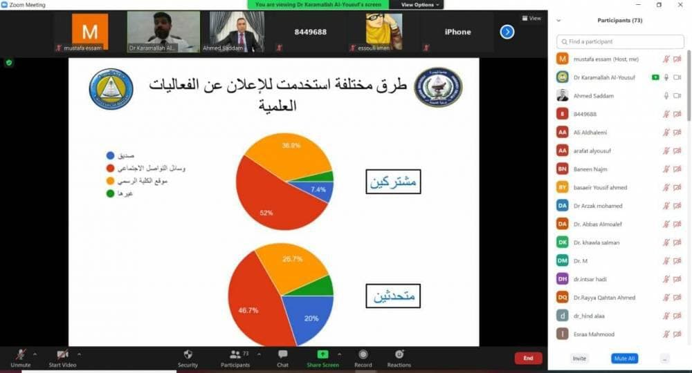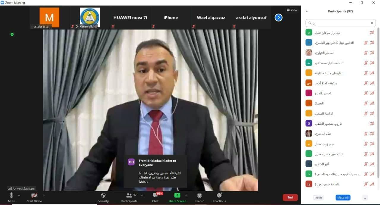 The Continuing Education and Development Center at University of Basrah concluded today the activities of its first virtual conference entitled (Development and education is a strength for the individual and the society in the time of digital transformation), which was held in cooperation with (Arid) platform, which includes a group of Arabic-speaking academics in Malaysian universities and with the support of the College of Administration and Economics
