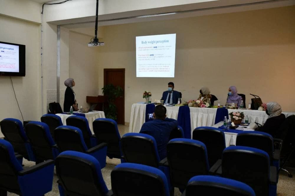The research presented by student Duha Ahmed Farhan aimed to estimate the prevalence of misunderstanding of body weight among adult females in Basrah city and the weight control methods they use