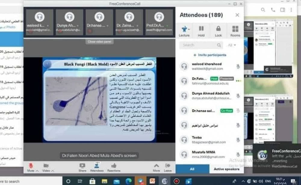 The lecture, which was presented by the instructor at University of Mosul, Dr. Faten Nuri Abd Hussain Mulla Abd, included the definition of fungi, their existence, their spreading, and the predisposing factors for the black fungus infection, as well as an exposition of the body's immune defenses, the types of fungal infections and their relationship with the Corona virus patients