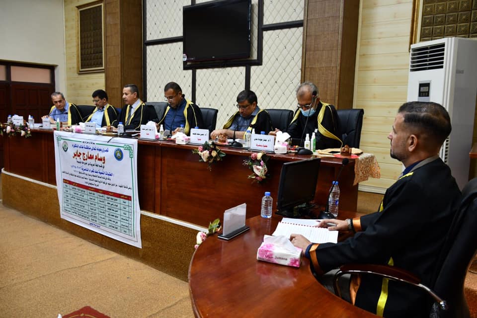 PhD thesis in the Department of Arabic Language at the College of Education for Human Sciences, University of Basra discussing (Textual thresholds for Nasiriyah poets 2003-2018 AD) for the student (Wisam Maarij Jaber)
