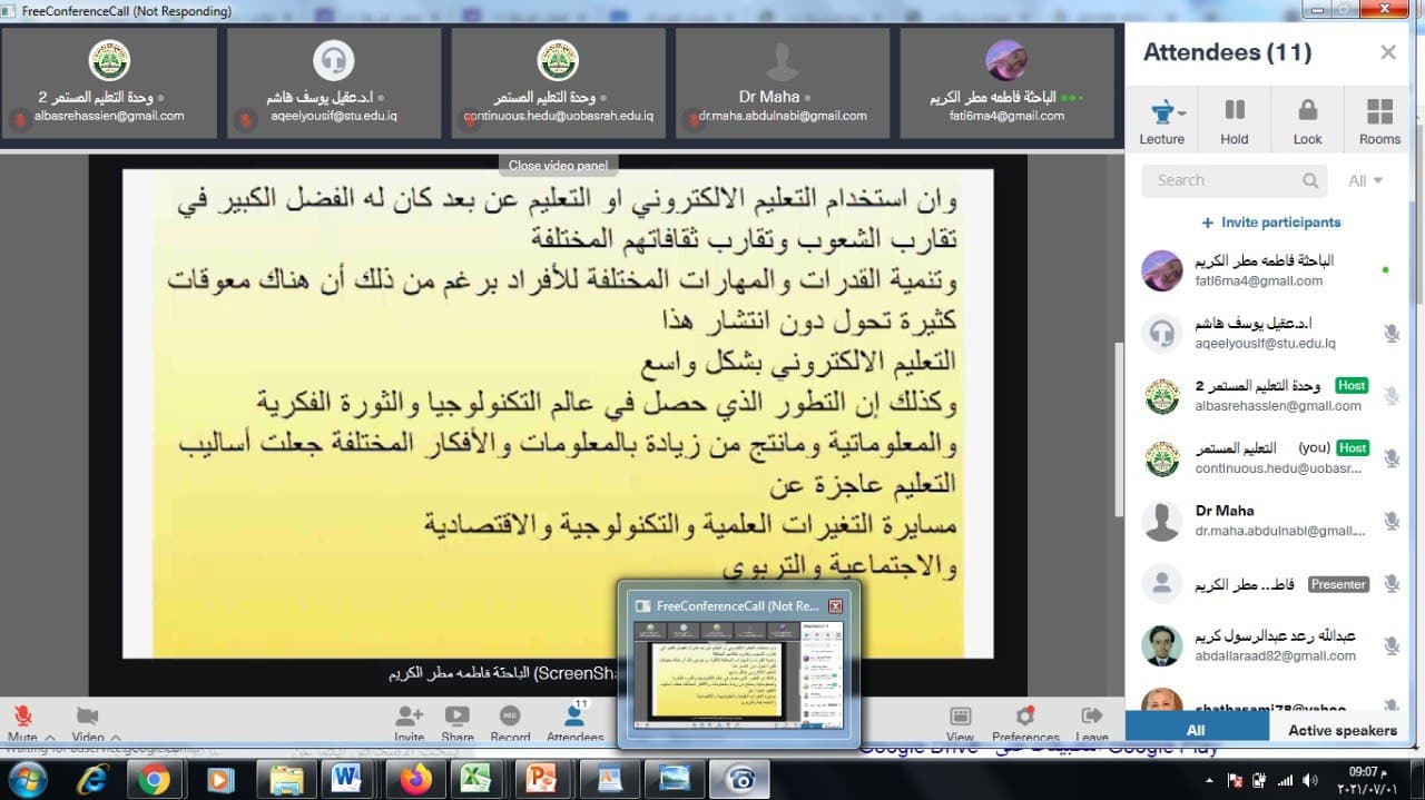 The College of Education for Human Sciences at the University of Basra organized a workshop on showing the obstacles to e-learning and the best solutions to address them