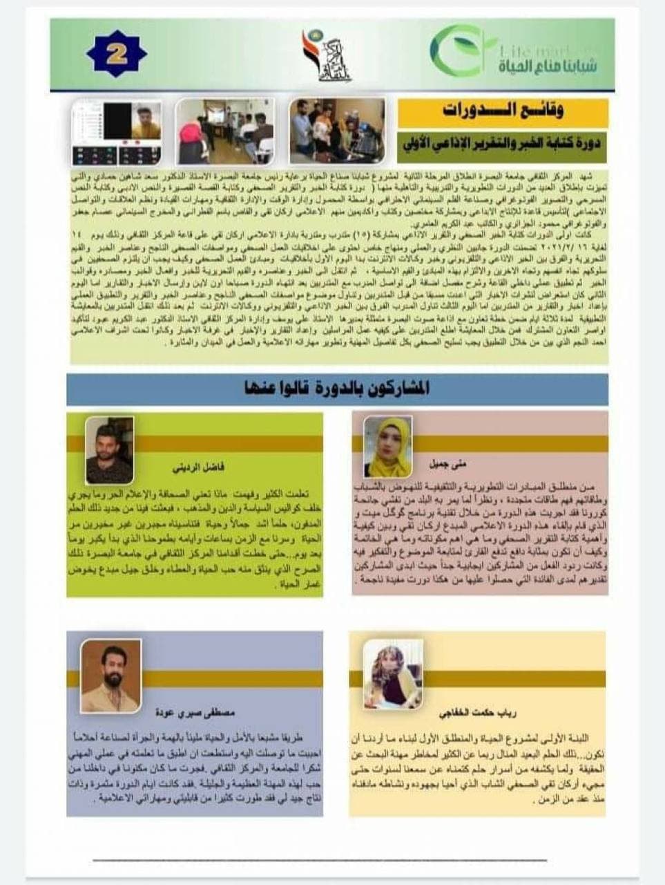 The Cultural Center at University of Basrah issued the first issue of the bulletin (Our Youth are Life Makers) as part of the project's third phase curriculum