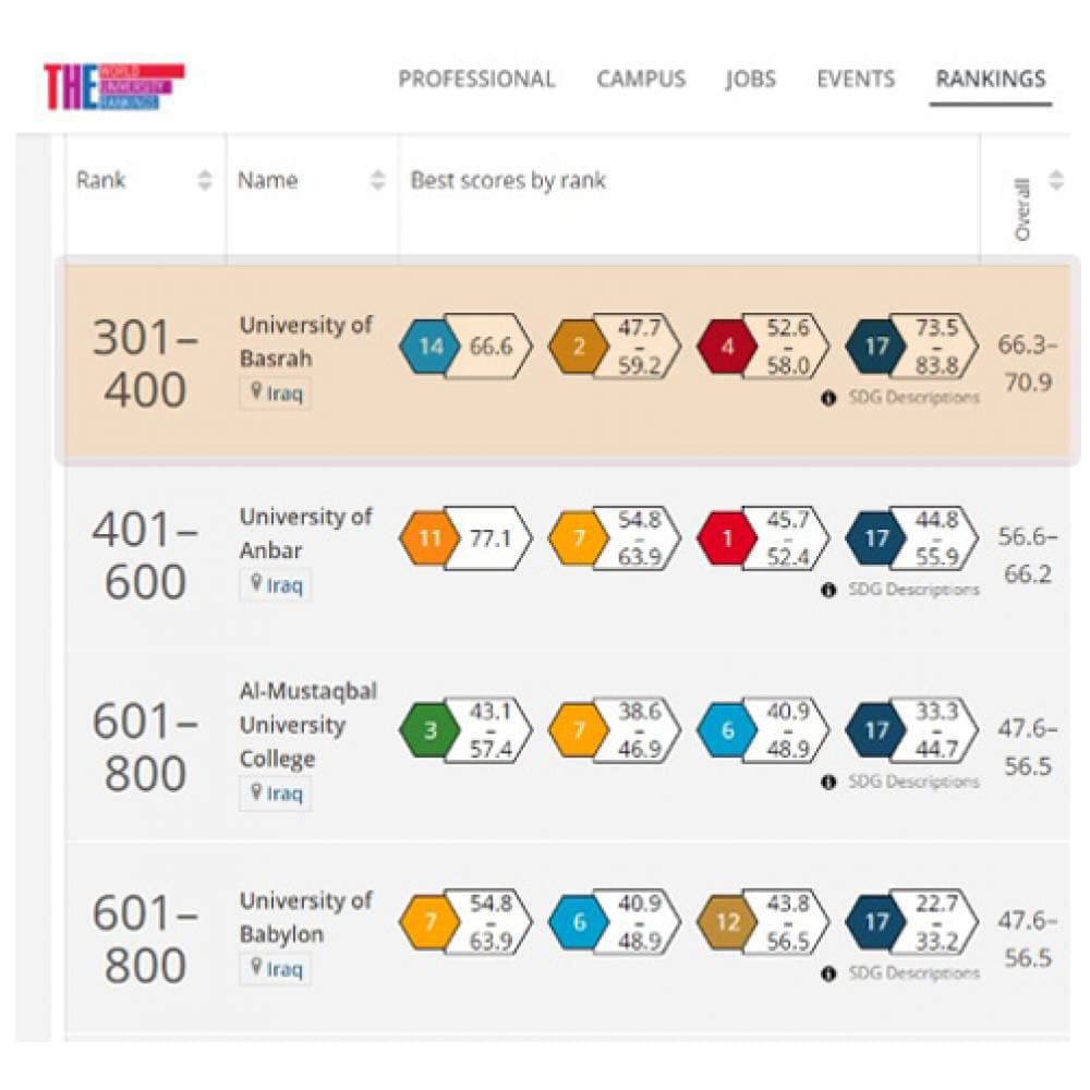 University of Basrah tops the Iraqi universities in the Times Impact classification for the year 2021