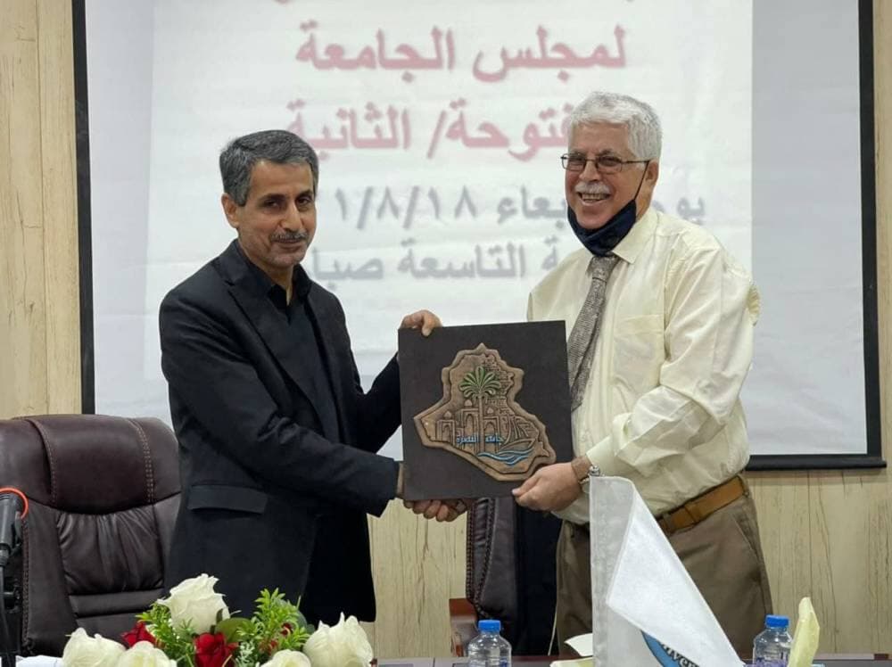 The Council of Basrah University, in its regular session held at the College of Education for Women, honored its president, Dr. Saad Shahin Hammadi, with the Creativity Shield for his distinguished medical and scientific achievements in community service