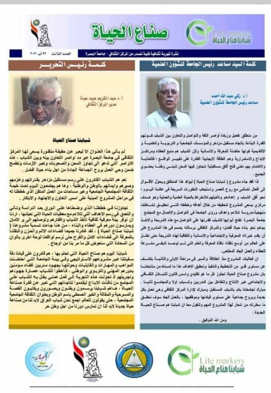 The Cultural Center at University of Basrah published the third edition of the Life Makers Bulletin as a part of the activities of the third phase of (Our Youth are Life Makers) project