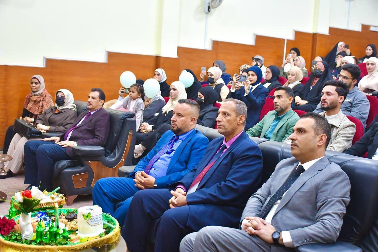 The College of Education for Humanities at the University of Basrah organized a joyous celebration on the occasion of the birth of Imam Ali bin Abi Talib, peace be upon him, attended by the University's President Assistant for Administrative Affairs, Dr. Haydar Khazal Al-Kaabi.