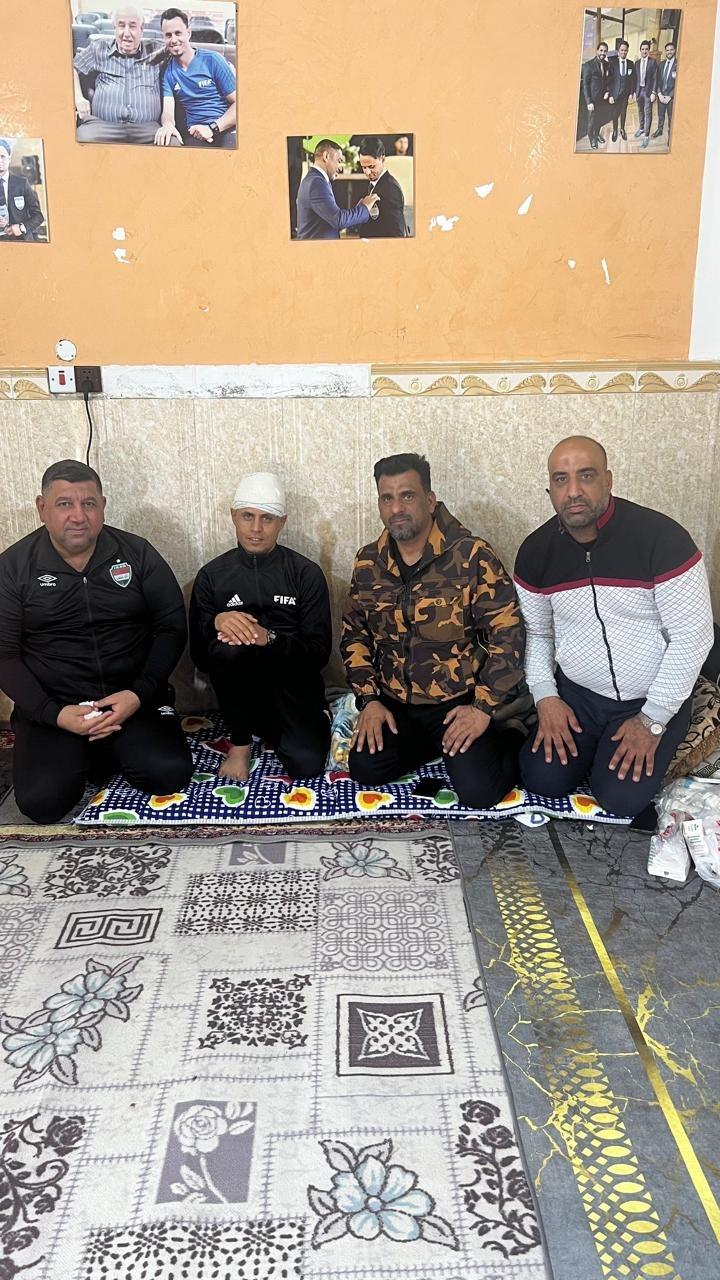 A delegation from the University of Basrah, led by the Dean of the Faculty of Physical Education and Sports Sciences, Dr. Haider Awfi Ahmed, visited international referee Captain Hussein Falah at his home to check on his health following an incident during the Karbala and Duhok club match.