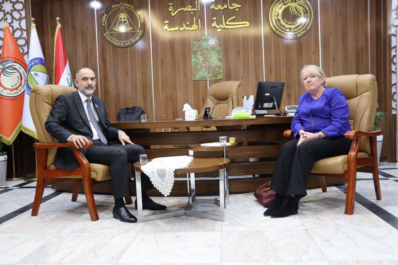 Dr. Mufeed Turki Rashid, Dean of the College of Engineering at the University of Basrah, welcomed Janet Alberda, the Dutch Ambassador to Iraq, along with her accompanying delegation.