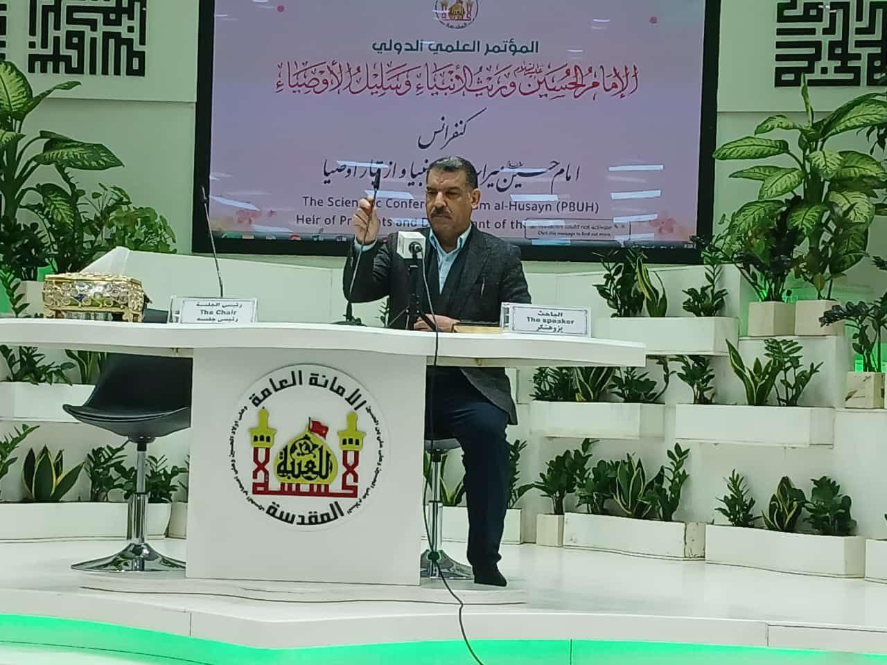 Dr. Mohsin Meshkel al-Hajjaj, an instructor at the Basra and Arabian Gulf Studies Center, participated in the international scientific conference organized by the Inherit the Prophets Foundation of the Husseiniya Shrine under the title (Imam Hussein, peace be upon him - the heir of the prophets and descendant of the guardians) during the third and fourth days of the blessed month of Sha'ban, on the third and fourth of Sha'ban.