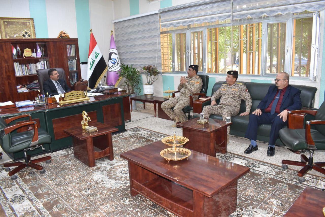 The Faculty of Administration and Economics at the University of Basra discussed ways to enhance joint cooperation with the Basra Operations Command (BOC) during a visit by the BOC's Director of Information, Brigadier General Sadiq Al-Kanani, to the deanship of the Faculty and met with the Assistant Dean for Administrative Affairs, Dr. Uday Safa Al-Din Al-Batat.