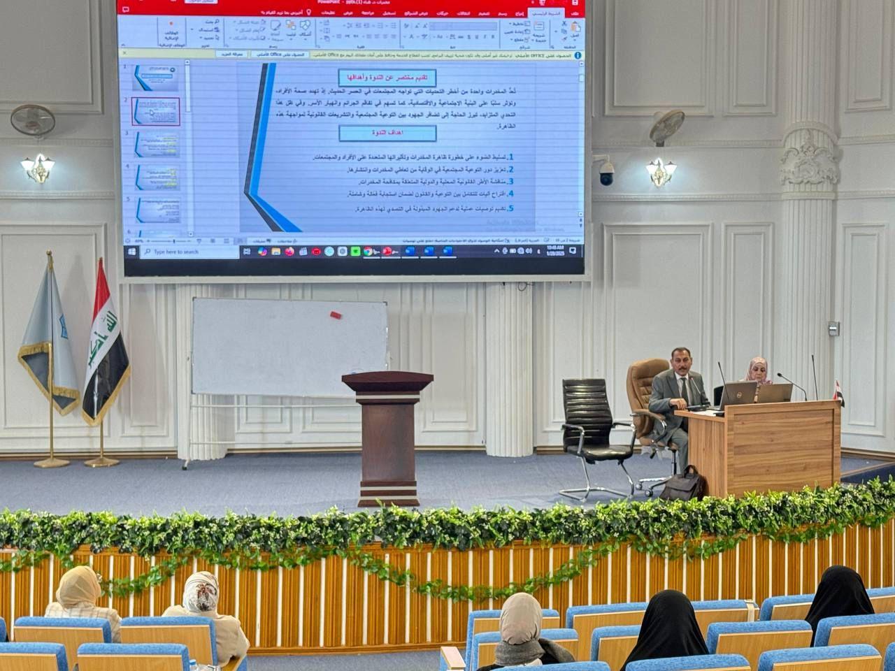The seminar, led by Dr. Abdul Ali Hamid Al-Tamimi, a faculty member of the college, addressed the development of Iraqi legislation related to drug control, the provisions of penalties, and the role of security and judicial authorities in enforcing the law.