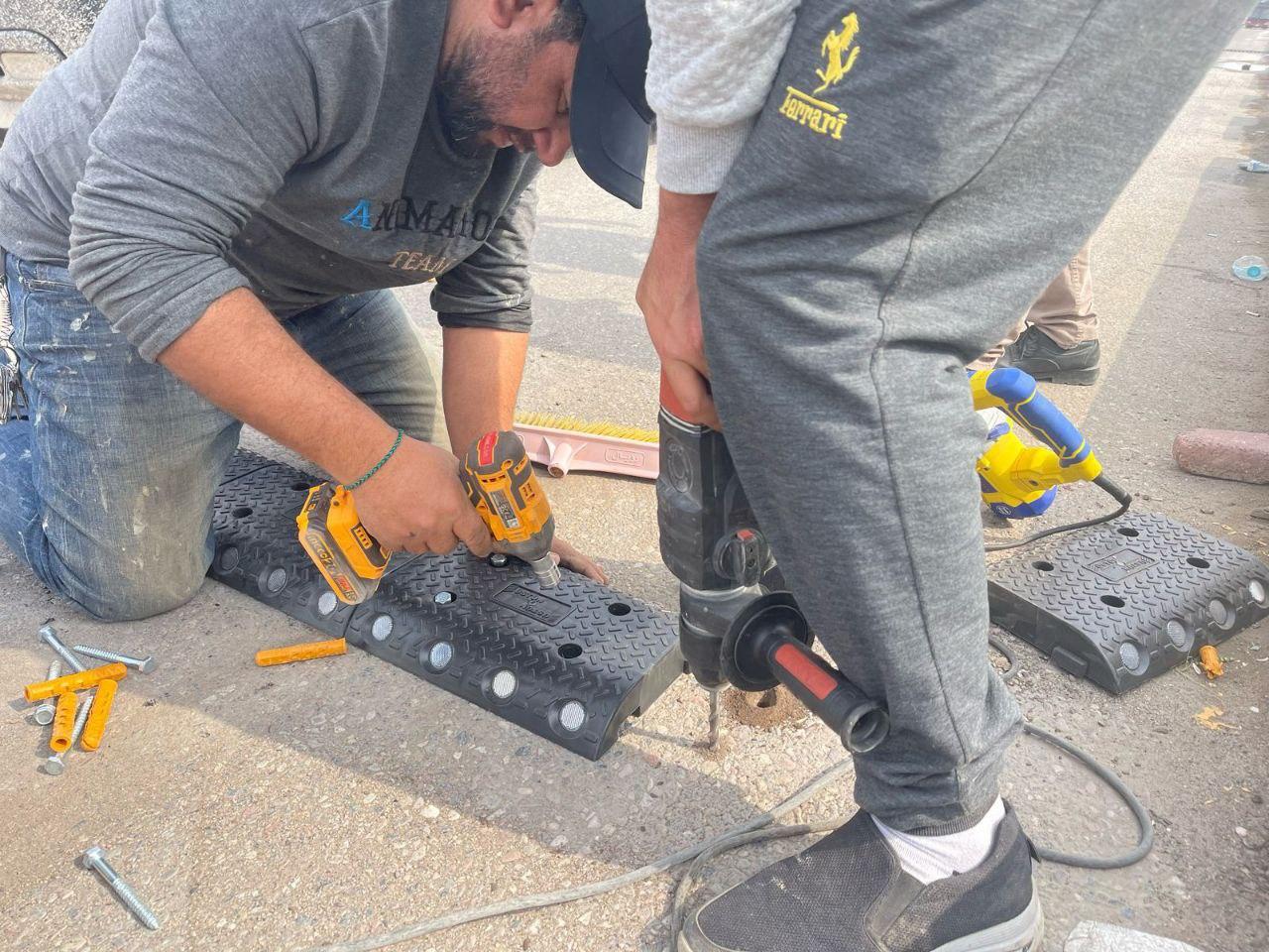 The Director of Diwan Affairs, Engineer Mahmoud Jafar, said that the staff of the Department of Diwan Affairs began installing artificial bumps in the streets of Karma Ali University, with the aim of reducing traffic accidents and facilitating the passage of students.