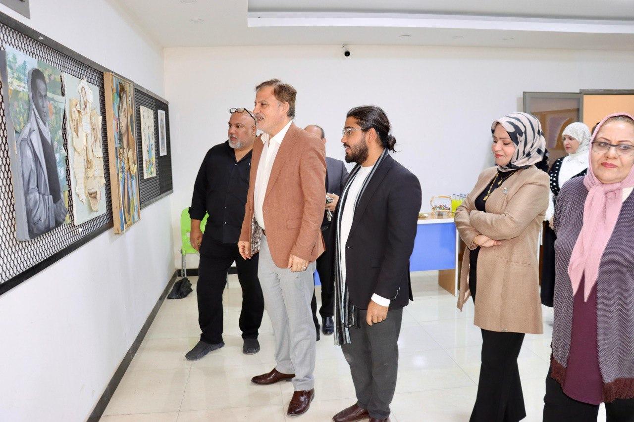 The Faculty of Fine Arts at the University of Basra organized an art exhibition for the Techniques and Applications course at the Exhibition Hall in the presence of a group of academics and official figures.