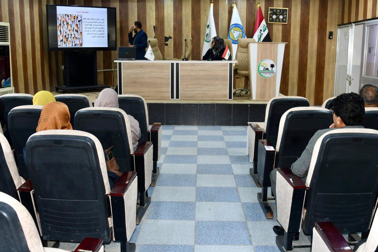 The workshop, which was lectured by Dr. Huda Faleh Hassan and Mr. Ahmed Kareem Jari, included the most important problems and challenges facing Arab women in general and Iraqi women in particular, and explaining violence against women and how to prevent and reduce it against women.