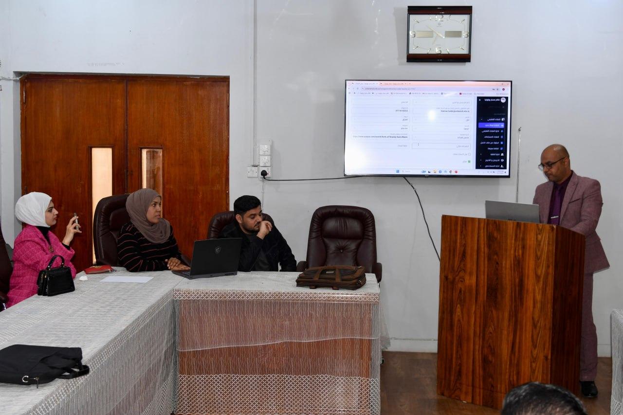 The course, which was lectured by Dr. Ahmed Hussein Jassim and a group of teaching staff, included the correct steps to be followed to add or delete a teaching staff to the Bologna System, as well as adding academic subjects, reviewing the challenges facing the implementation of the system, discussing the most prominent difficulties and experiences of some colleges, and this was within a practical framework. After that, the professor's page was explained and how to manage it and follow up on students' attendance and grades.