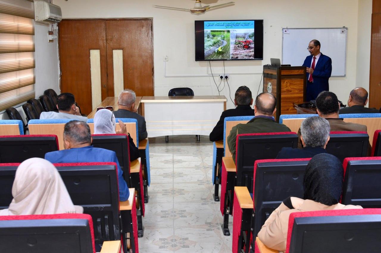 The workshop, presented by Dr. Abdul Kazim Nasser Saleh and Dr. Zain Al-Abideen Abdul Hussein, included the foundations and practical rules in garden design, the types of designs used in public and private gardens, the botanical garden, the basics of its engineering designs, and the most important functions it aims to achieve.