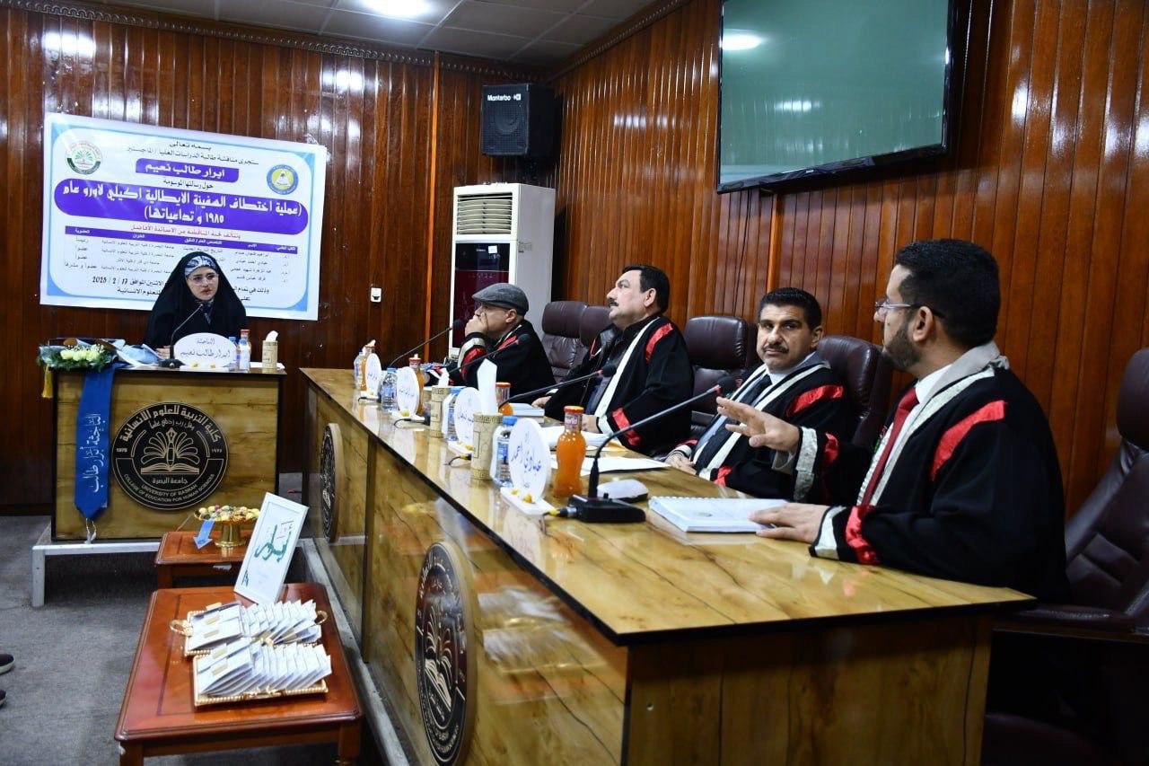 The thesis, submitted by student Ebrar Taleb Naim Al-Saadi, aimed to analyze the hijackings carried out by the Palestine Liberation Front (PLF), with a focus on the hijacking of the Italian ship.