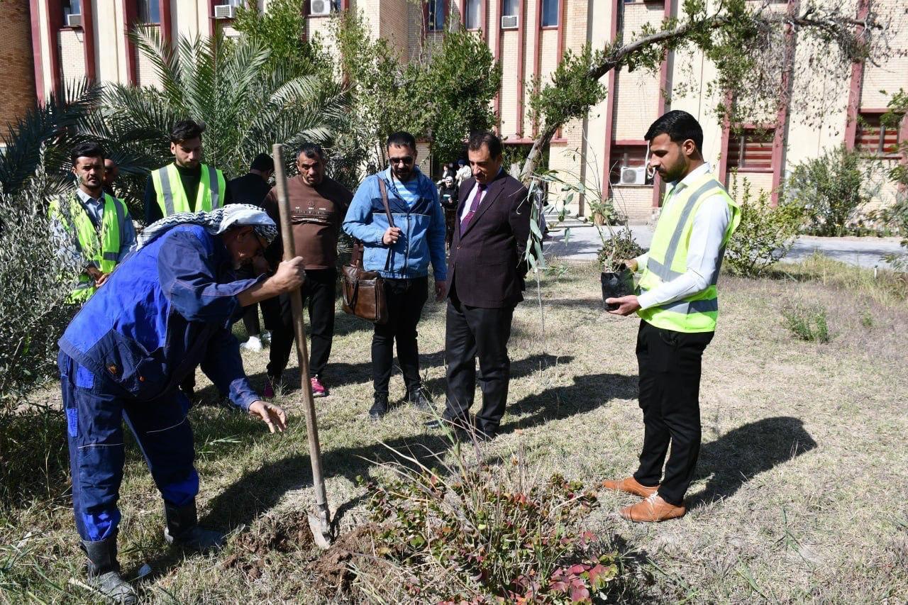 The College of Education for Humanities at the University of Basrah organized a large-scale planting campaign in the college's gardens and approaches within the framework of the National Afforestation Day activities.