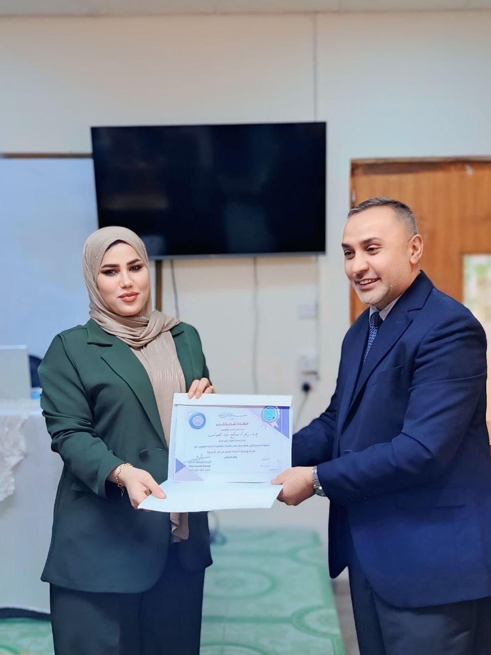 The symposium was presented by Dr. Zahraa Saleh Abdul-Sahib Al-Saeedi from the College of Education for Human Sciences/ Department of Psychological Counseling and Educational Guidance. It addressed the role of women in building and advancing society.