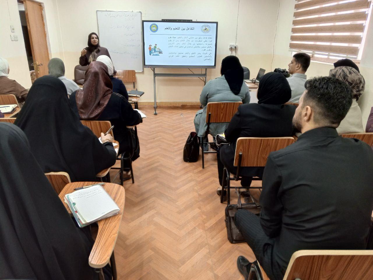 The lecture, presented by Dr. Zainab Faleh Salem, reviewed the concepts of teaching and learning through illustrations, in addition to individual activities and direct questions, as well as tasks to be submitted later.
