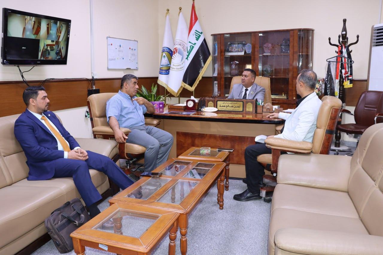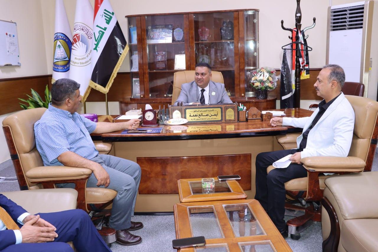 Dr. Ayman Saleh Nehmeh, Assistant Rector of the University of Basra for Administrative Affairs, received a delegation from the Ministry of Higher Education and Scientific Research to follow up on the financial measures taken for the evening study at the university and its formations.