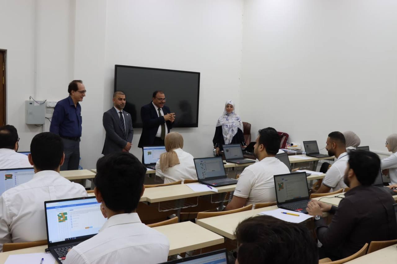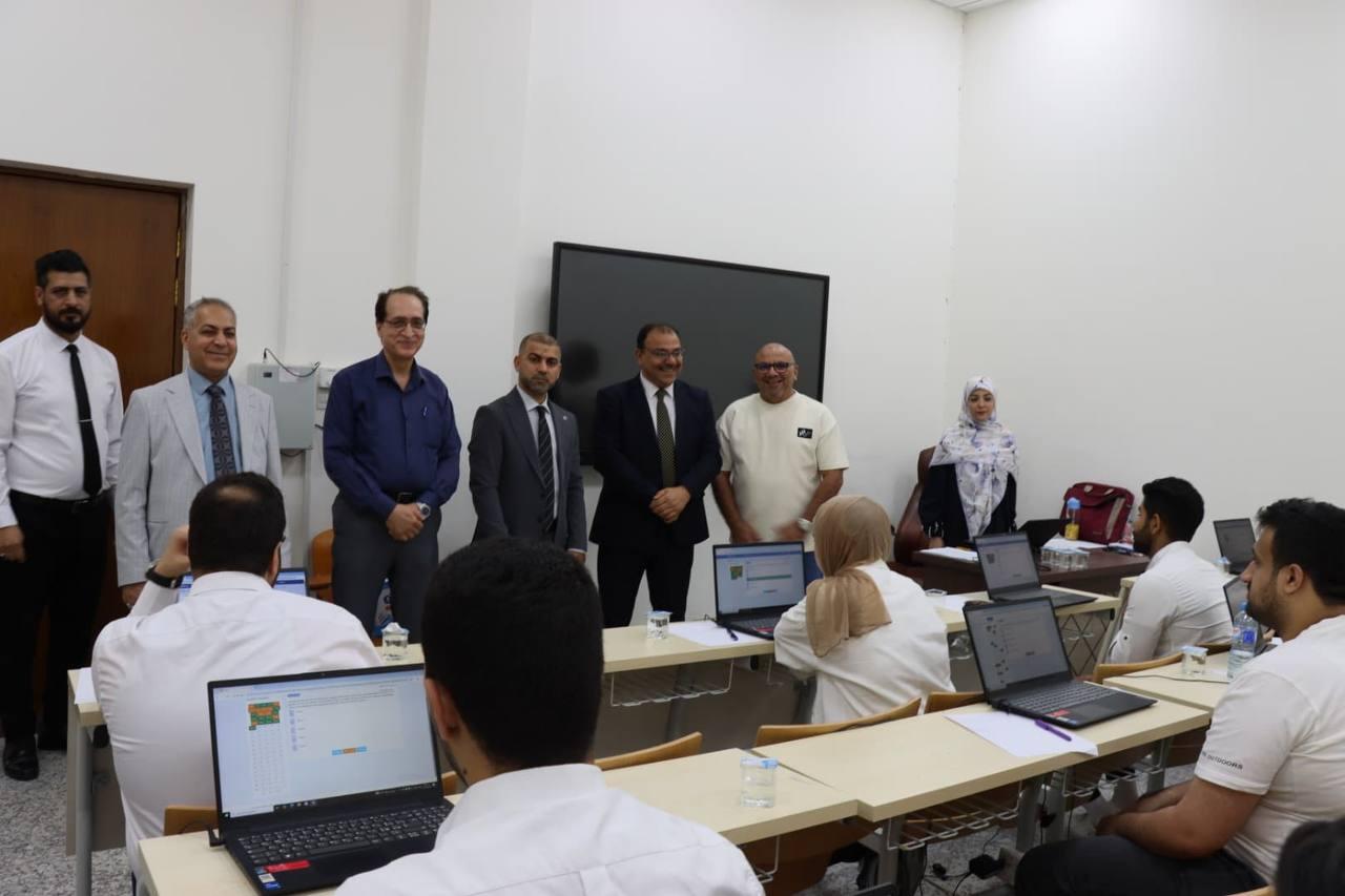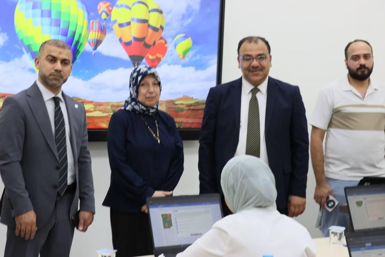 The Dean of the College of Computer Science and Information Technology, Dr. Hisham Kazim Hashim, accompanied by the Dean of Al-Zahraa Medical College, Dr. Jawad Ramadan, inspected the progress of the exam process, stressing the importance of providing a safe and organized environment that contributes to achieving justice and accuracy in evaluation.
