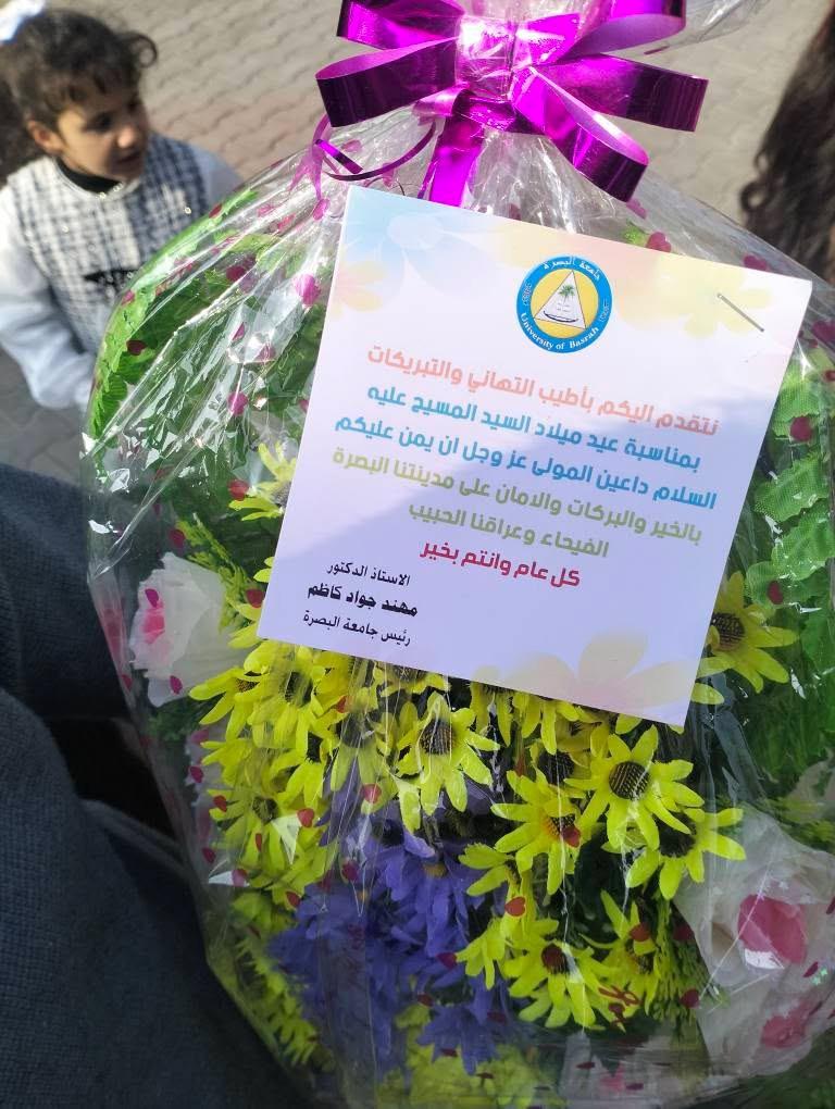 Under the direction of the President of the University of Basrah, Dr. Muhannad Jawad Al-Asadi, a delegation from the University of Basrah visited the Small St. Theresa Church to extend congratulations and best wishes to members of the Christian community on the occasion of Christmas.
