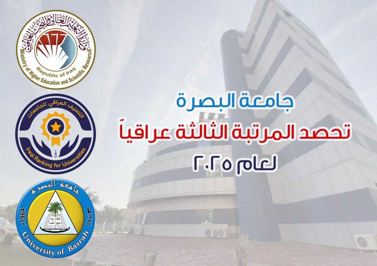 The University of Basrah has secured third place in the Iraqi University Classification for 2025, conducted by the Supervision and Scientific Evaluation Authority at the Ministry of Higher Education and Scientific Research.