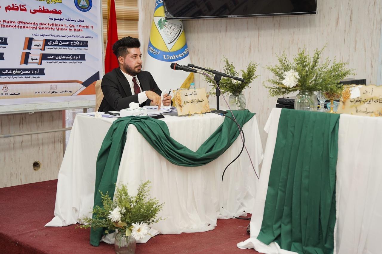 The thesis submitted by the student Mustafa Kazem Hussein aims to study the gastroprotective benefits of Iraqi date palm (Phoenix dactylifera L. Cv. " Barhi) against ethanol-induced gastric ulcer models in rats.