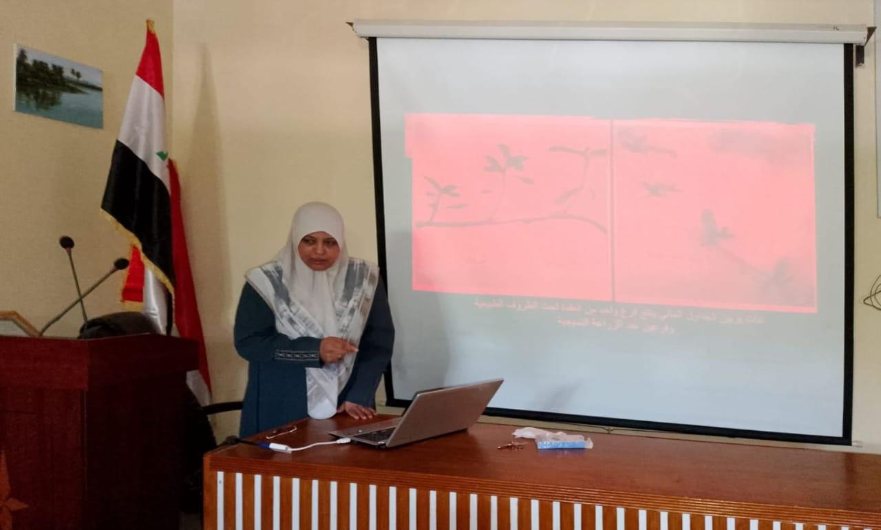 The session, in which the lecturer Halima Jabbar Abdul Razzaq lectured, addressed the unique property that plants caracterized by, unlike other living organisms, which is the ability of the energy stored in the plant nanocell to produce a full-grown plant, which enabled scientists and researchers to invest this property in the field of plant tissue and cell cultivation to produce plants of economic value and resistant to salinity and drought.