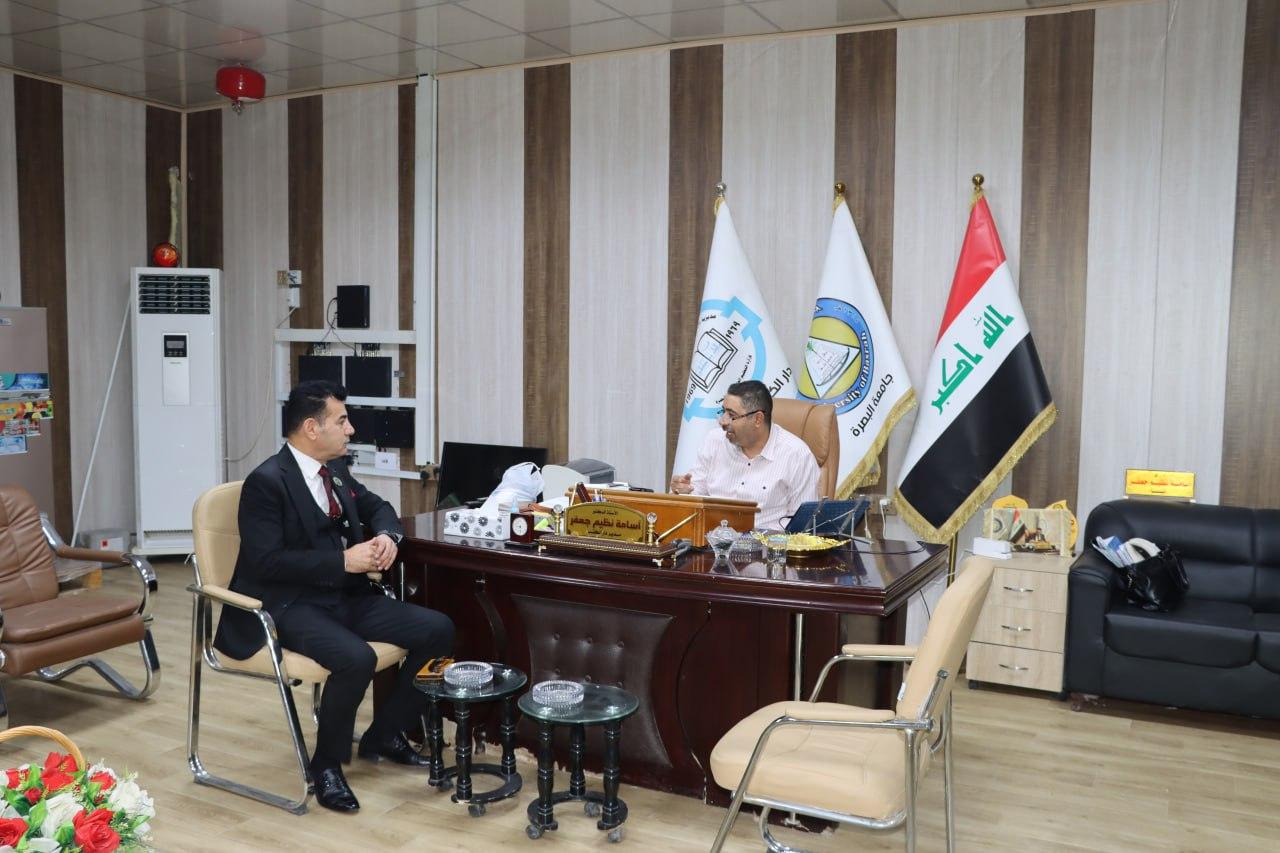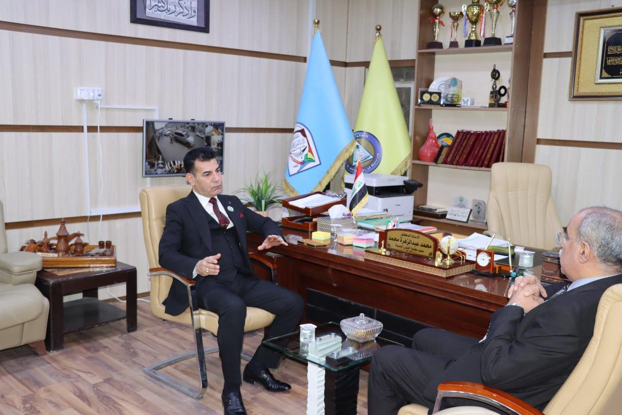 During his visit to the College of Fine Arts, he met with its Dean, Dr. Mohammed Abdul Zahra Mohammed. They discussed the development of the college's infrastructure, focusing on increasing the number of classrooms and staff rooms.