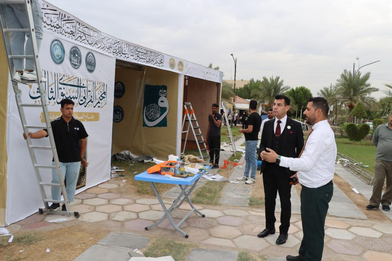 Additionally, in the same context, Dr. Rishak visited the site of the third annual Quranic camp installation, organized by the Holy Hussaini Shrine under the auspices of the University of Basrah as part of the Quranic project for Iraqi universities. He reviewed the progress of the camp's completion.