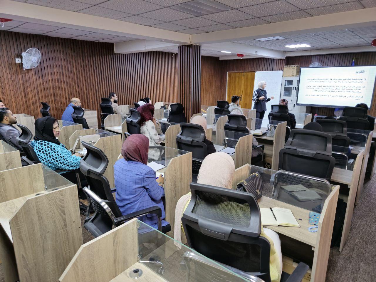 The Center for Development and Continuing Education at Basrah University organized a lecture on measurement and feedback for the administrative specialization, which was the third unit of the teaching methods course.