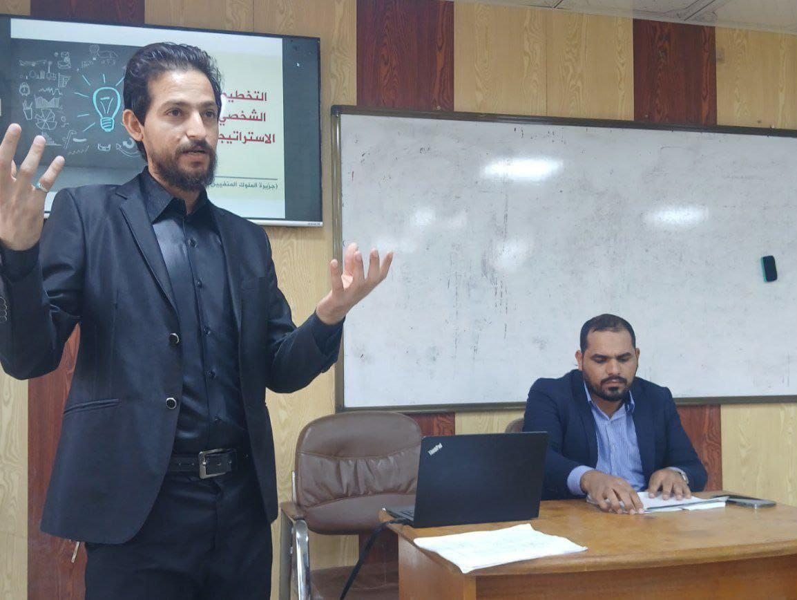 The workshop, which was lectured by lecturers Murtada Abdul Hussein Muhammad and Abdul-Hussein Abdul-Karim, included how to prepare for the labor market through a set of practical experiences of some experts in this field, in addition to following correct planning methods to create a suitable work environment.