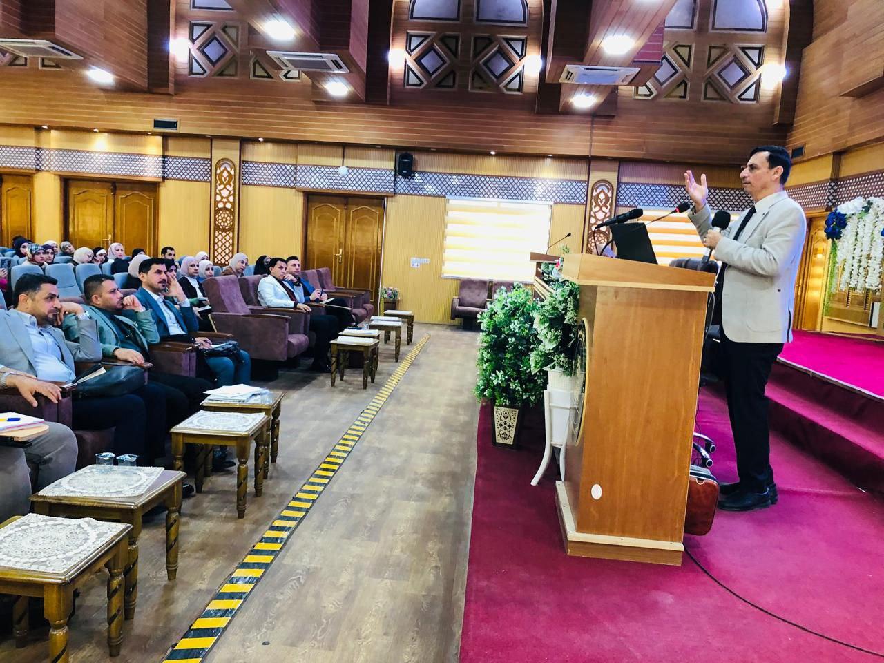 The two lectures presented by Dr. Oday Basheer Issa and Dr. Zainab Ali Khalaf included a statement of the ministerial program on the Bologna track for scientific and human specializations. They also showed how to design digital content by introducing participants to technologies and electronic platforms by creating electronic classes, platforms, and means of creating a presentation on the PowerPoint program and what are the uses of the teacher in addition to tests and attendance as an assistant factor for the student in addition to immediate activities through the practical aspect.