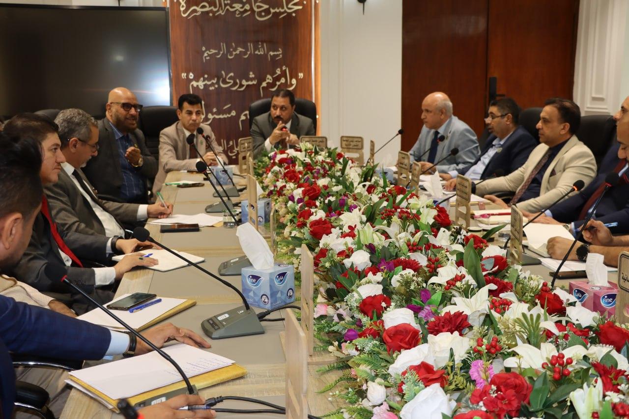 Basrah University held an extensive meeting with the departments and committees involved in preparing for the central student graduation ceremony of the 57th session for the academic year 2023-2024. The meeting was chaired by Dr. Muhannad Jawad Kazem, with the presence of Vice President assistance for Scientific Affairs, several deans, and department directors.