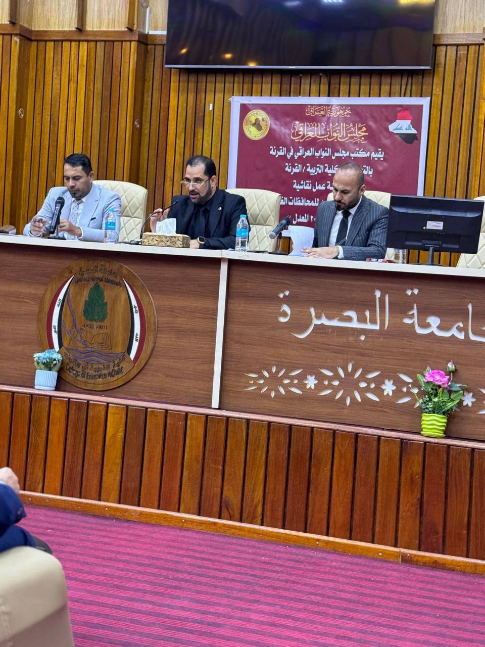 College of Education in Al-Qurna, in cooperation with the office of the Iraqi Council of Representatives in Al-Qurna, organized a discussion workshop on discussing the amendment or enactment of a new law for governorates not organized in a region No. 21 of 2008 as amended.