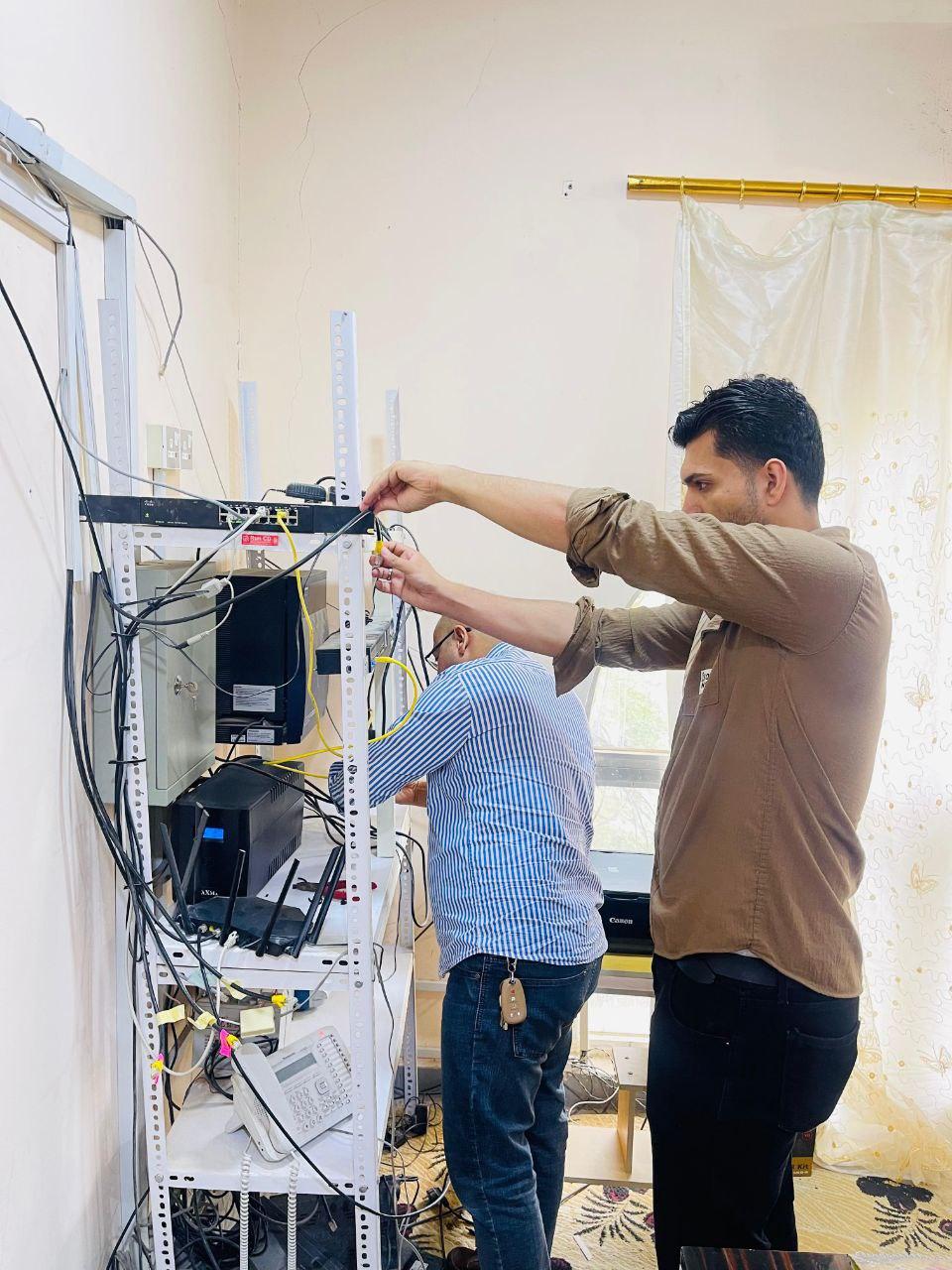 The technical teams working at Basrah University Center for Information and Communication Technology have continued to repair the network communication system malfunctions at the Qurna College of Education.