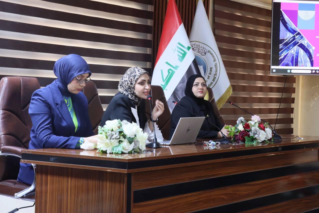 The workshop, presented by Lecturer Saba Abdulwahed Saddam and two other lecturers, covered how to write a graduation thesis using several basic criteria for writing successful research from both an organizational and scientific standpoint.