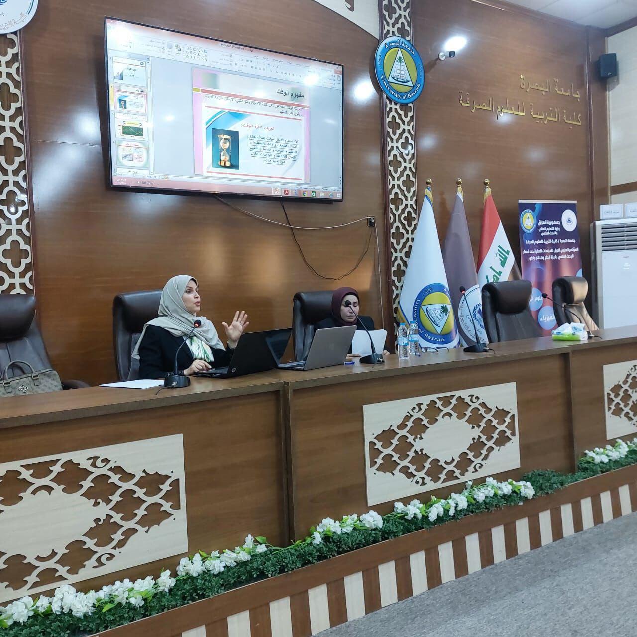 The seminar, which was lectured by Dr. Tahreer Zaki Hasan and lecturer Lamia Subhi, dealt with introducing students to the impact of organizing and investing time in increasing work efficiency, which increases opportunities for progress and provides greater opportunities to achieve the goal, the concept of self and how to appreciate and respect self and other person ,and influence him positively or negatively.
