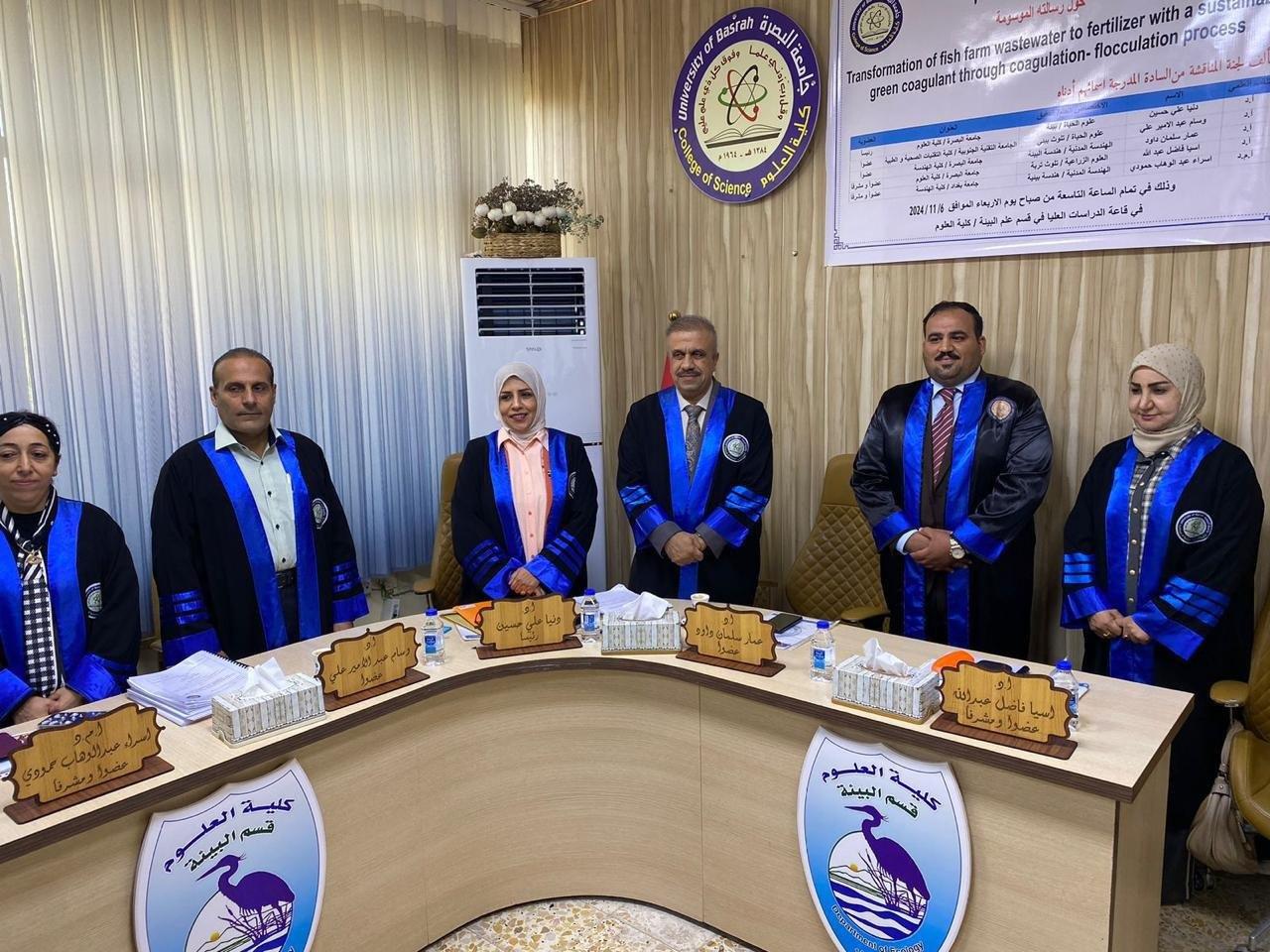 The thesis, presented by the student Sajjad Hatem Kadhim, aims to treat wastewater from fish ponds and use the remaining sludge as fertilizer to improve plant growth.