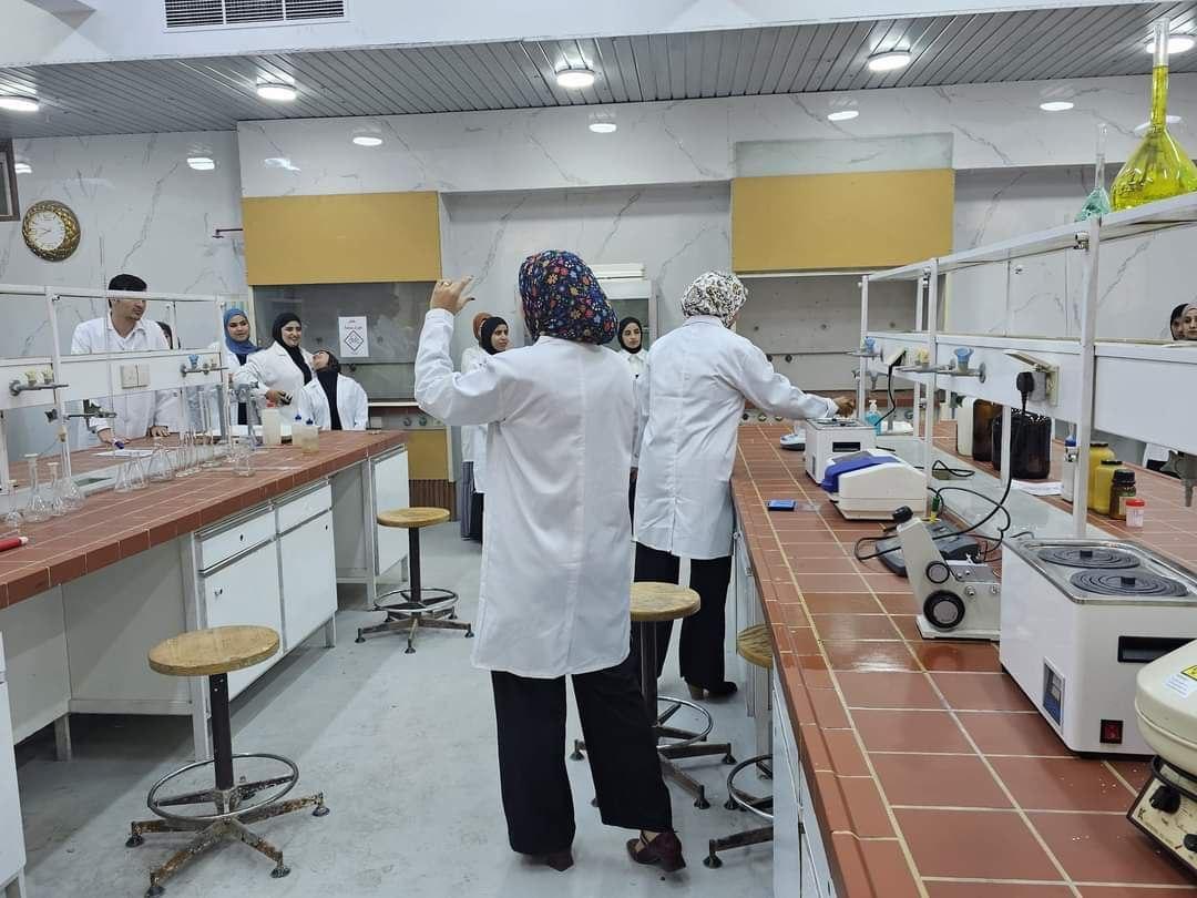 The seminar, which was lectured by lecturer Nuha Ayad Muhammad, in collaboration with a group of lecturers, included explaining how to act in emergency situations quickly and wisely by using emergency equipment or taking appropriate measures, with immediate reporting to the competent authorities to ensure control of the situation and effective ways to acquire the necessary skills to safely deal with chemicals and glassware.