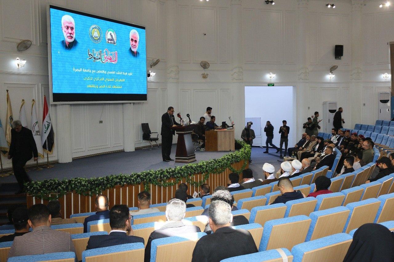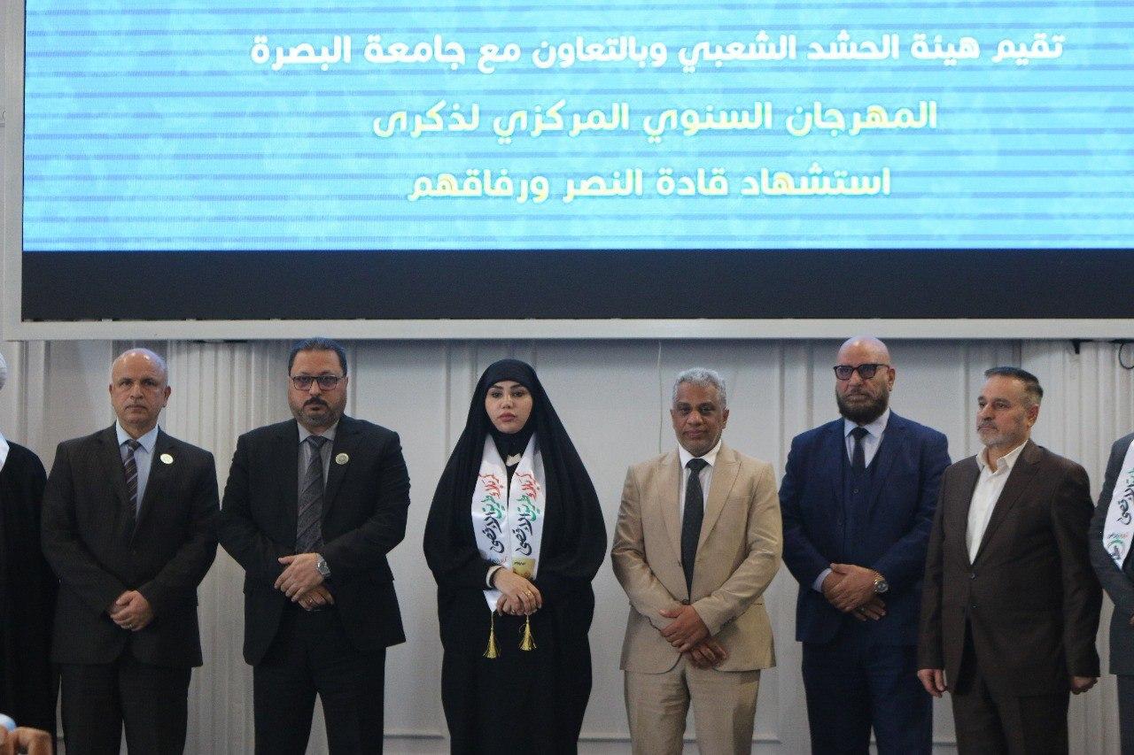The University of Basrah, in collaboration with the Popular Mobilization Committee in Basrah, organized the central annual ceremony to commemorate the martyrdom of the Victory Leaders.