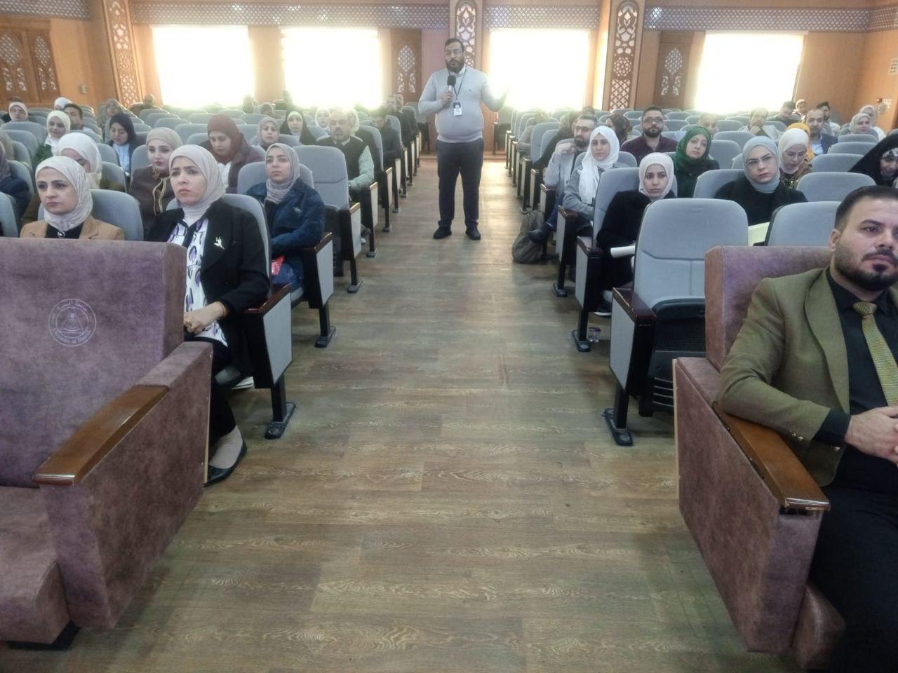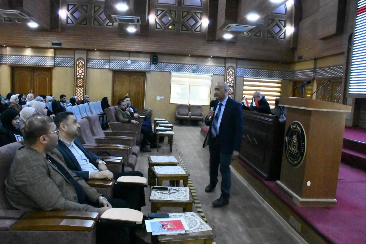 The lecture, presented by Dr. Qutaiba Muslim Dawood and Dr. Muhannad Abdul-Hussein Aboud, included an introduction to the ethics of various professions and outlined the characteristics of the teacher. It emphasized the importance of educational ethics, noting that an instructor must have self-control and that the academic title should not be viewed as a personal achievement. Additionally, instructors do not have the right to strike from giving lessons, as this would harm students and future generations, since such behavior can be emulated by others. They should be characterized by giving in all circumstances.