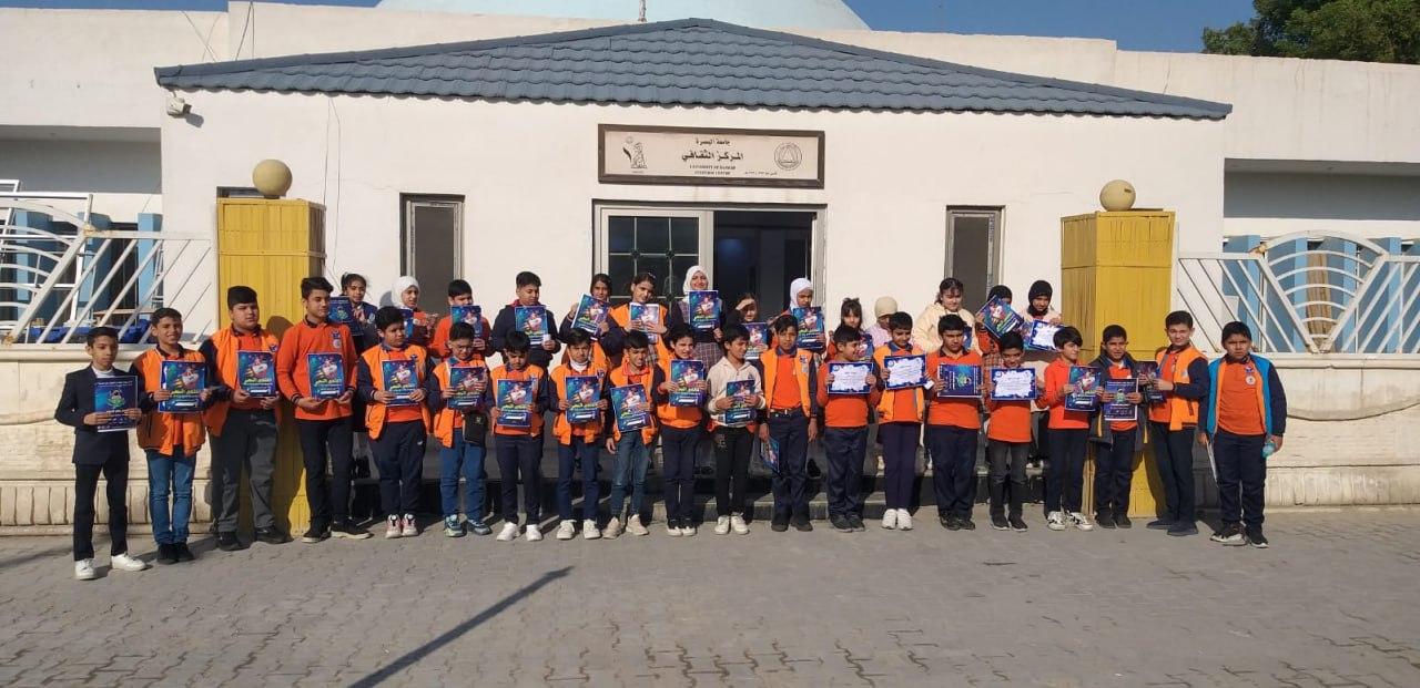 The Cultural Center at the University of Basrah received a delegation from Al-Uloom Private Mixed Primary School, which included a group of outstanding students and the school's staff.