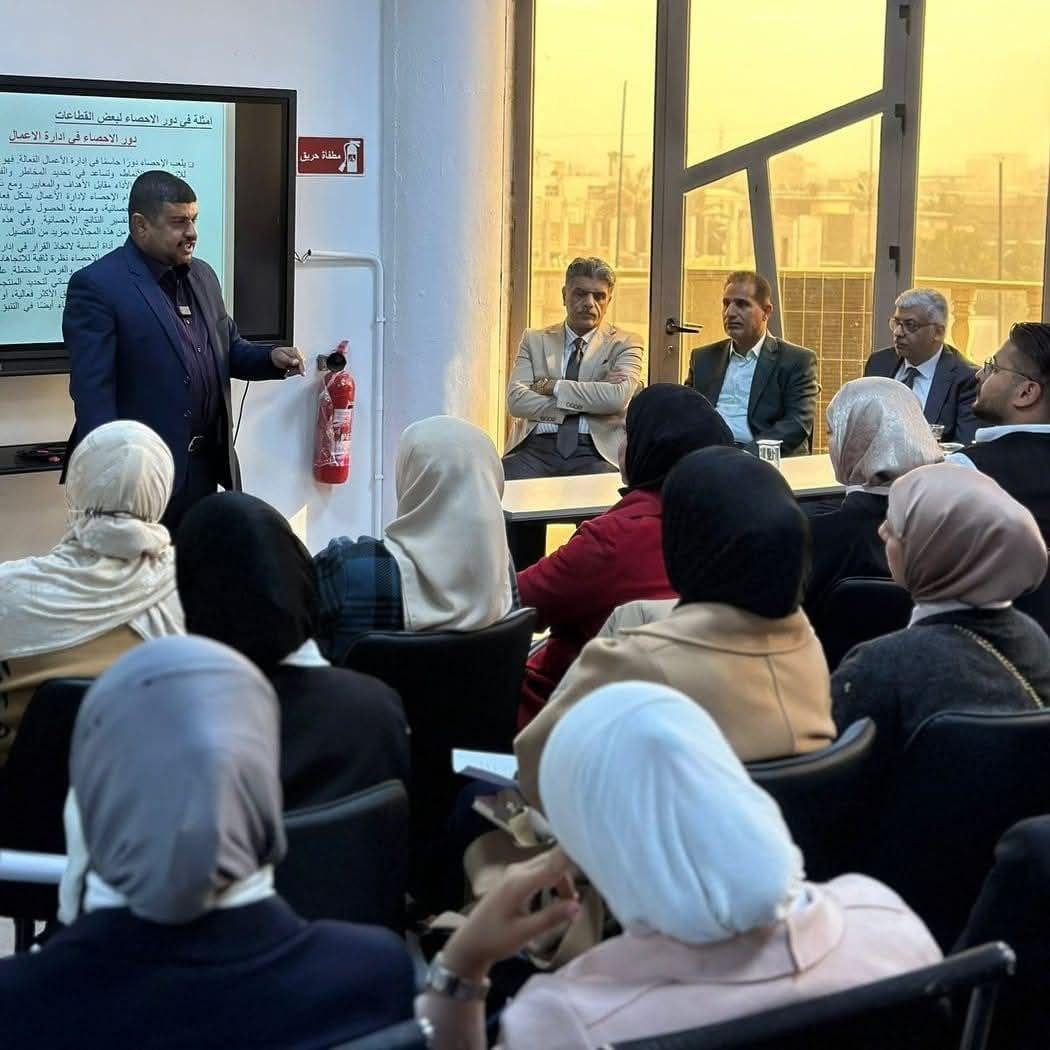 The workshop, conducted by Dr. Baha Abdul Razzaq Qasim and Dr. Essam Younis Abdul Zahra, the executive director of the company, covered several aspects in this regard, including the importance of statistics in supporting all sectors of society and discussing the role of statistics in various sectors such as business administration, economics, and health. It also addressed the essential skills that statisticians need to enter the job market and discussed a range of challenges that hinder the work of specialists in statistics.