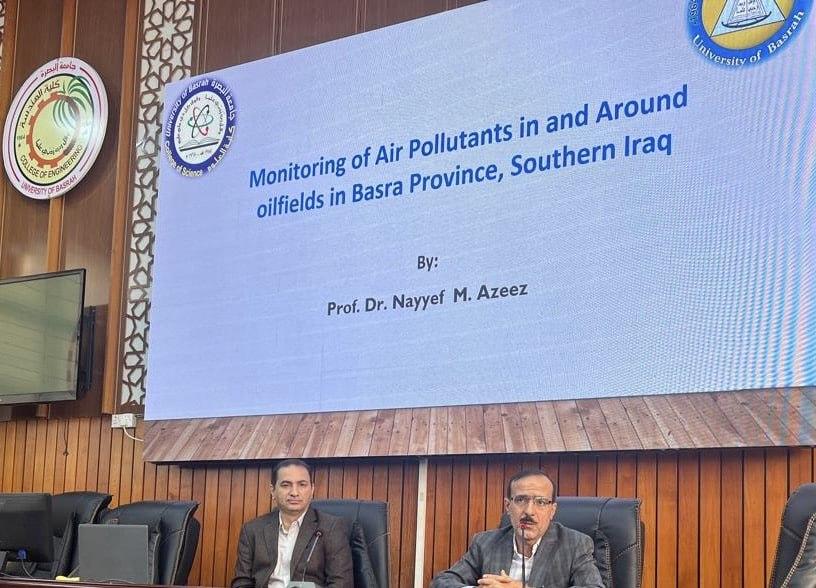 The participation included delivering a lecture titled "Monitoring Air Pollution Inside and Around Oil Fields in Basra Governorate, Southern Iraq."