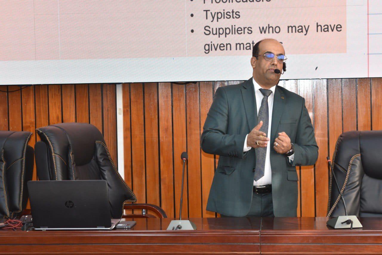 The workshop, led by Dr. Uday Basheer Issa, included an explanation on how to select an appropriate title for a master's thesis or doctoral dissertation and the importance of choosing suitable academic language for the topic. Additionally, it covered the sequencing of researchers.