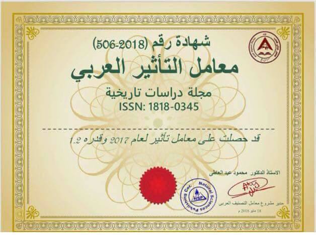 The Journal of Historical Studies gets on the certificate of the Arab influence coefficient