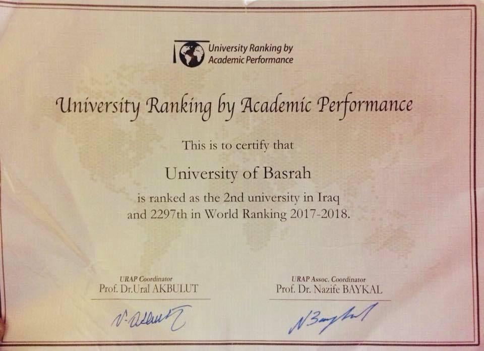 University of Basrah in the 2nd on Iraq universities in university ranking academic performance ...